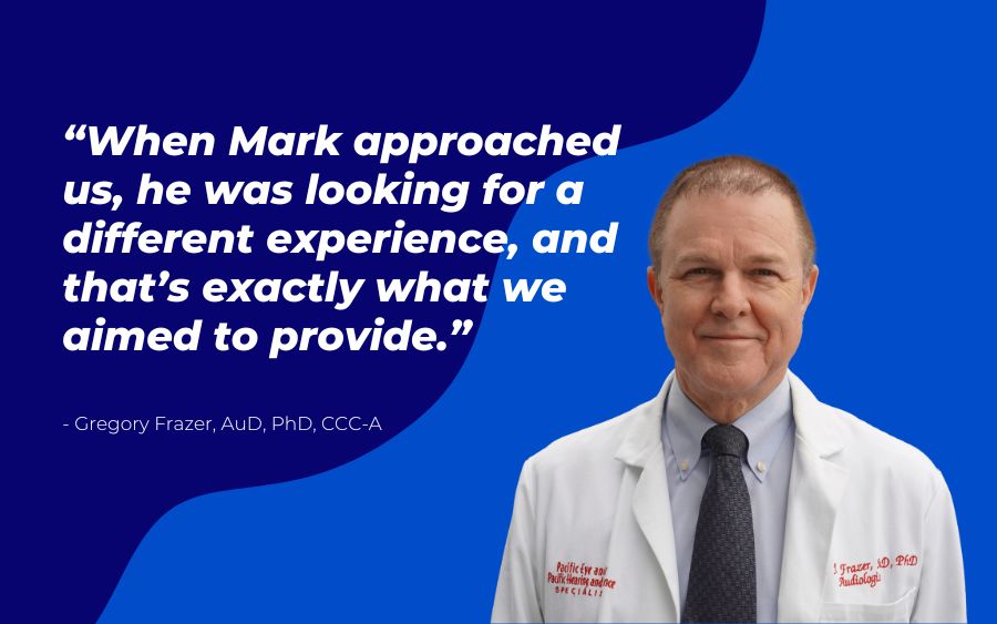 I’ve been privileged to work with many talented individuals throughout my career at Pacific Hearing, but meeting Mark was a unique experience. From the moment he walked through our doors, we knew this was not just about fitting a hearing aid; it was about helping someone who relies heavily on their hearing, both professionally and personally, to get back to living fully.