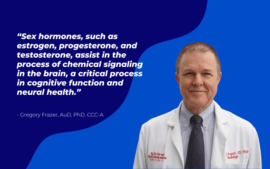 Research seems to indicate that reduced levels of estrogen, testosterone, cortisol, insulin, and thyroid hormones could contribute to hearing loss and tinnitus.