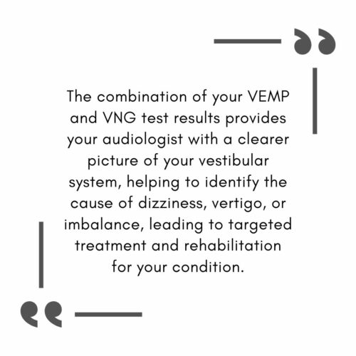 Although it’s not the sole tool for diagnosis in most conditions related to dizziness, vertigo, and balance disorders, VEMP testing is typically used to aid in conjunction with VNG testing in the evaluation of conditions like vestibular neuritis (inflammation of the vestibular nerve) and Meniere’s disease (fluid abnormality of the ear).