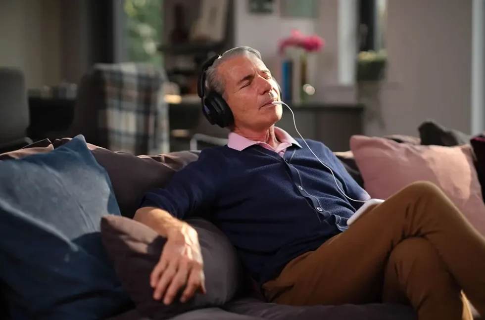 High-quality Bluetooth headphones deliver personalized sounds to stimulate the auditory pathway.