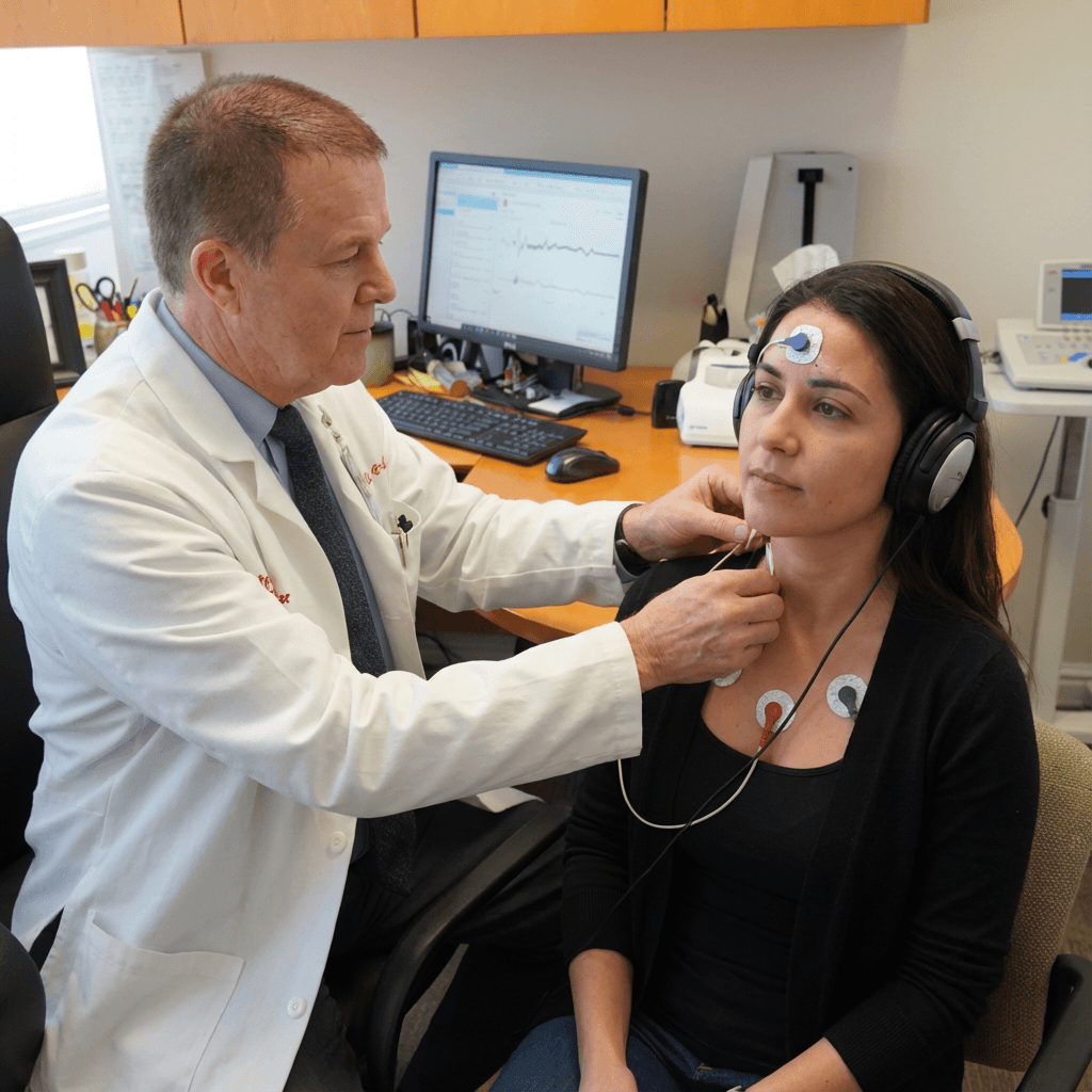 To assist us in diagnosing conditions related to dizziness, vertigo, and balance, so we can provide the best form of treatment, we use a new advanced technology known as VEMP (Vestibular Evoked Myogenic Potential) testing.